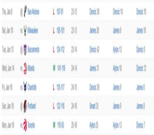 湖人队过去的7场比赛只赢下其中的两场,而且过去的7天时间里湖人队打了5场比赛,这已经是NBA7天时间最多的场次,可作为41岁的詹姆斯打满五场,东契奇都只打了4场,这五场比赛詹姆斯场均32.5分钟,拿到25.2分7篮板6.8助攻1抢断1.2盖帽,命中率50.6%,三分命中率36.4%,他真的已经很努力。