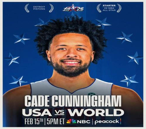 坎宁安成为东部全明星首发,这是他生涯第2次入选全明星,也是连续第2年入选。赛季至今,坎宁安场均25.9分6.0篮板9.6助攻。